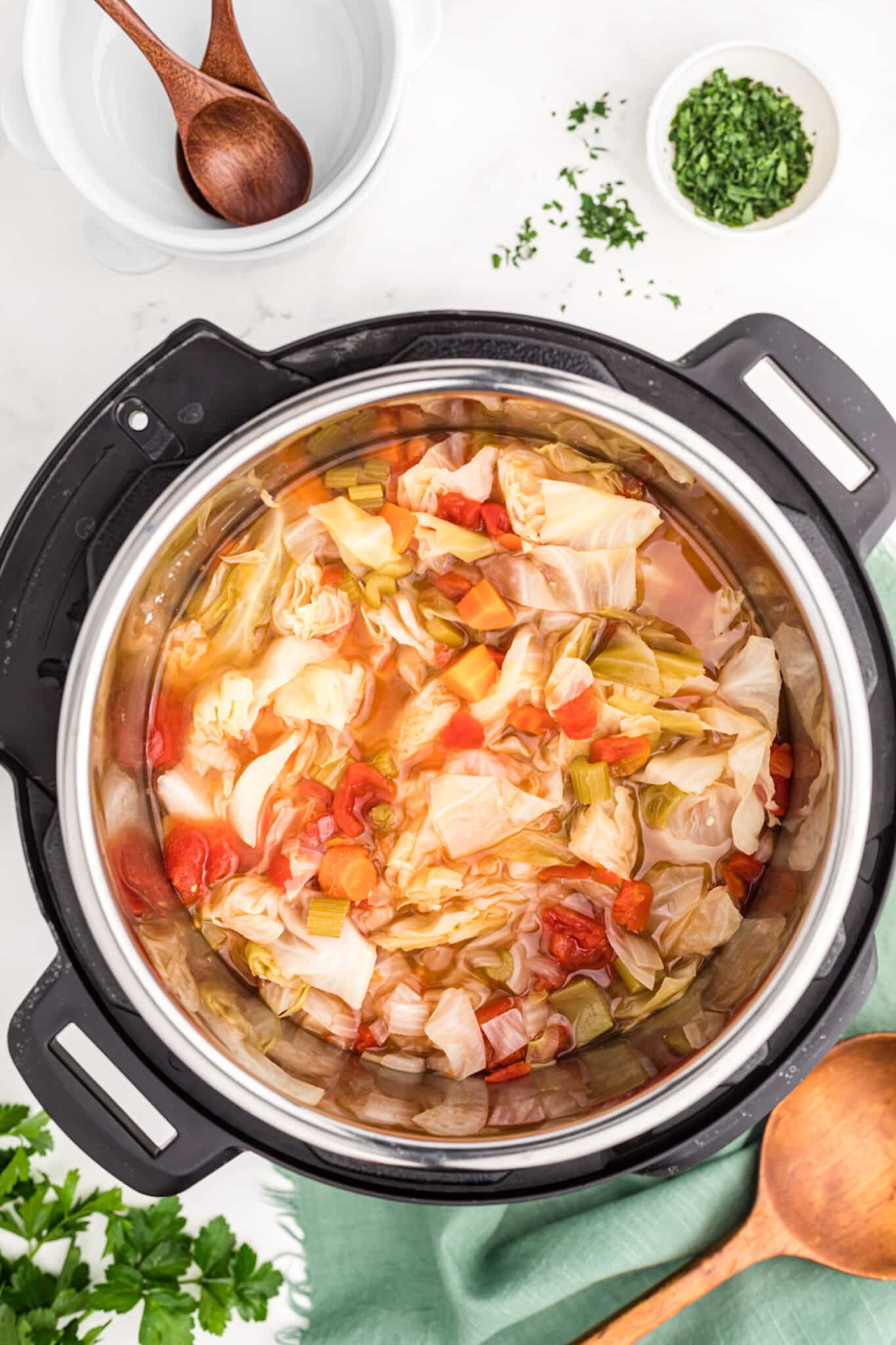 - STOVETOP DIRECTIONS: In a large stockpot over high heat, combine the cabbage, onion, garlic, carrots, celery, chopped tomatoes, and broth. Bring the mixture to a boil, then reduce the heat, cover the pot, and let it simmer for 15-20 minutes, or until the vegetables are tender. Stir in the lemon juice and parsley and serve hot.